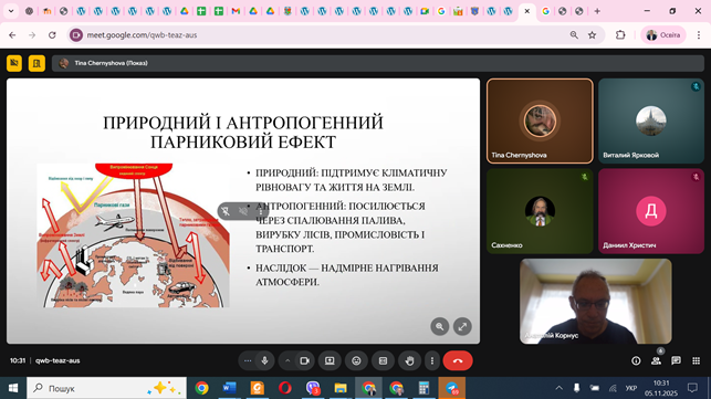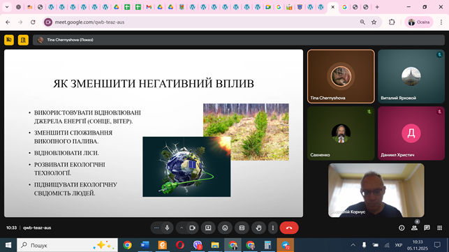 З нагоди цих дат, в рамках вивчення дисципліни «Загальне землезнавство» (викладач – к.г.н., доц. А.О. Корнус) та роботи студентської наукової проблемної групи з фізичної географії, картографії та туризму, було проведено тематичний круглий стіл, в рамках якого здобувачі освіти 722 групи спеціальності 014 Середня освіта (Географія) виступили з науковими доповідями, присвяченими глобальним екологічним проблемам, продовольчій безпеці, кліматичним змінам, подоланням відсталості країн.