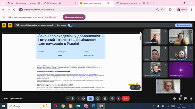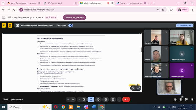 Завершальна частина кураторської години була присвячена питанням процедури перевірки робіт на наявність запозичень та механізмам захисту прав учасників освітнього процесу. Інформування студентів щодо законодавчих новацій сприятиме підвищенню якості освіти та дотриманню стандартів наукової етики в межах факультету.