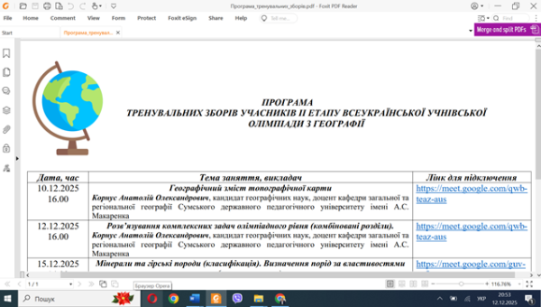 Викладачі ПГФ долучилися до підготовки команди Сумської області до участі у ІV етапі Всеукраїнської учнівської олімпіади з географії