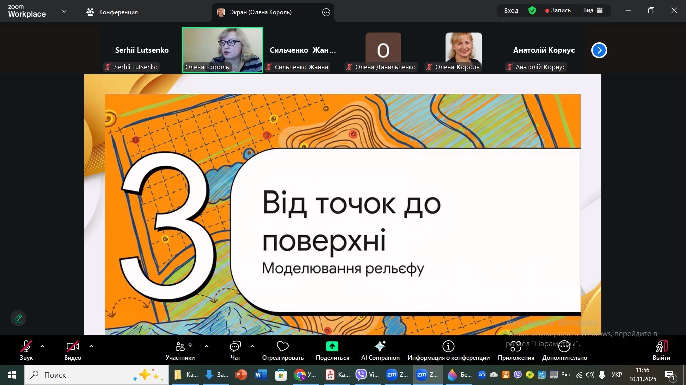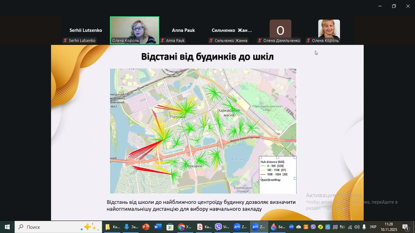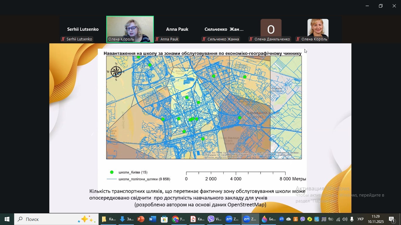 14 листопада 2025 р. к.п.н, доцент кафедри загальної та регіональної географії Олена КОРОЛЬ провела зустріч зі здобувачами закладу загальної середньої освіти №11 м. Ромни 10 і 11 класів з доповіддю на тему «Візуалізація наукових досліджень: від інфографіки та інтерактивних презентацій до карт і ГІС».