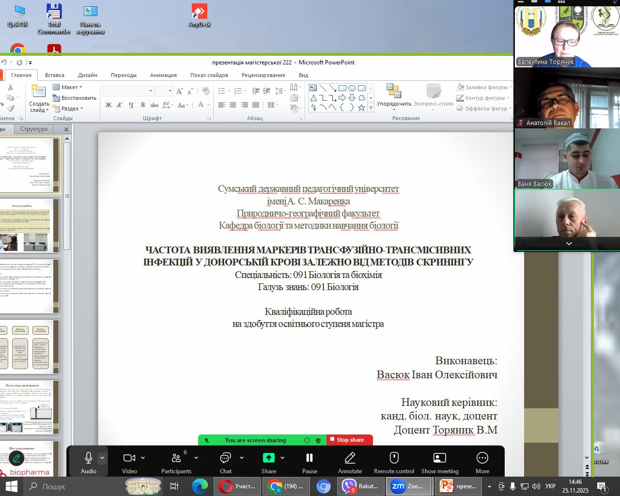 На кафедрі біології та методики навчання біології відбулося засідання, присвячене передзахисту кваліфікаційних робіт студентів денної та заочної форми навчання за освітньою програмою Магістр спеціальності 014 Середня освіта (Біологія та здоров’я людини) та Магістр спеціальності 091 Біологія.