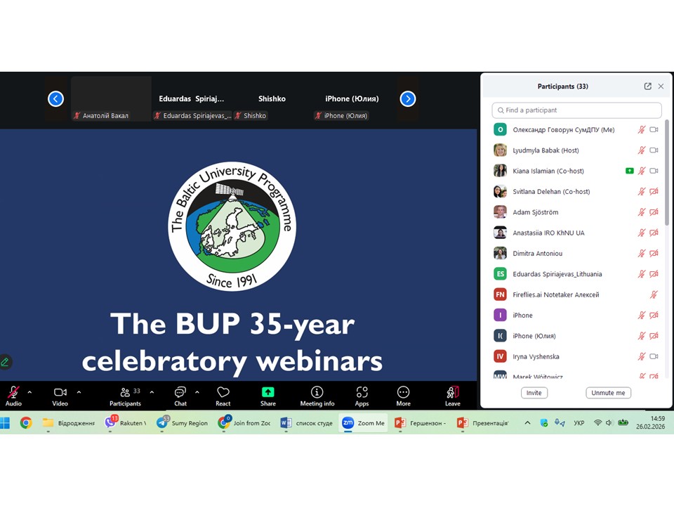 У лютому 2026 року завідувач кафедри біології та методики навчання біології СумДПУ імені А.С. Макаренка Юлія Литвиненко взяла участь у навчальній програмі «Підготовка експертів з оцінки ґрунтів та відновлення територій, пошкоджених внаслідок бойових дій», що реалізовувалася з 2 по 23 лютого 2026 року у змішаному форматі (онлайн та очно на базі Сумського національного аграрного університету).