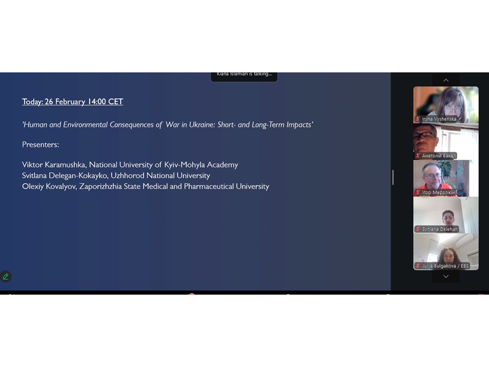 Доценти кафедри біології та МНБ Говорун О.В., Вакал А.П. та Мерзлікін І.Р. взяли участь у міжнародному вебінарі, присвяченому актуальній темі впливу війни на екосистеми, громадське здоров’я та критично важливу інфраструктуру України.