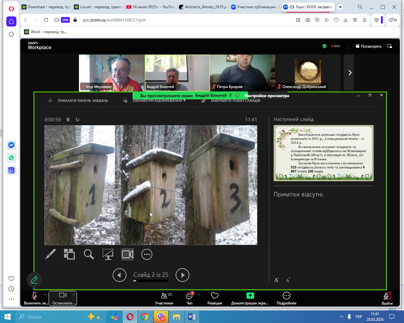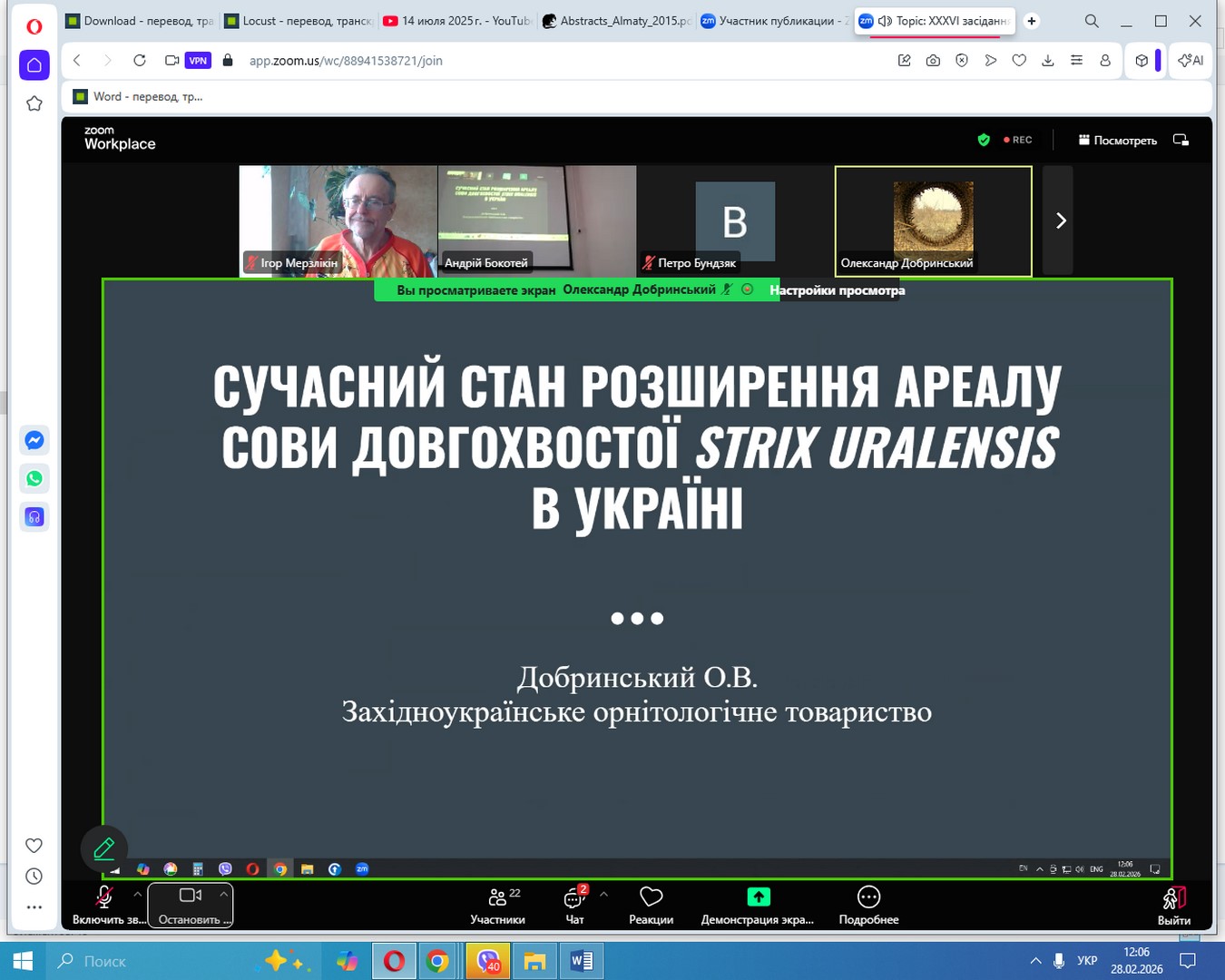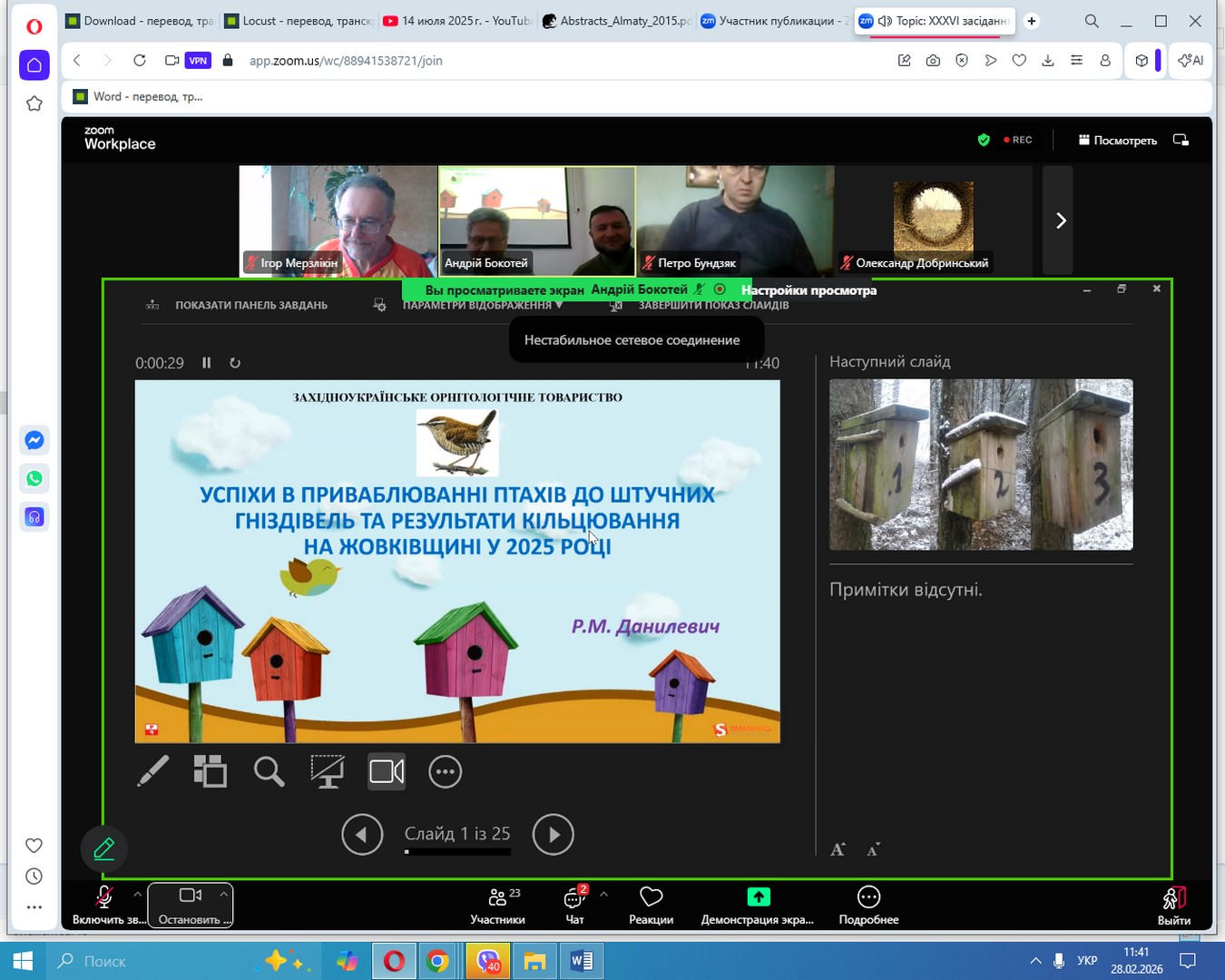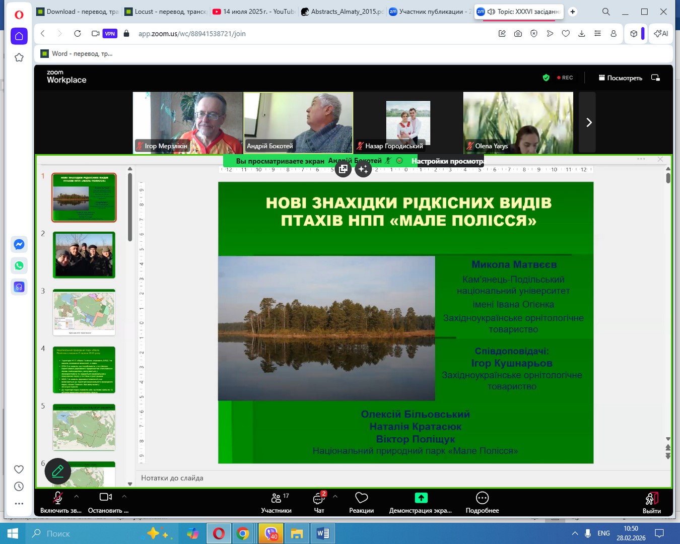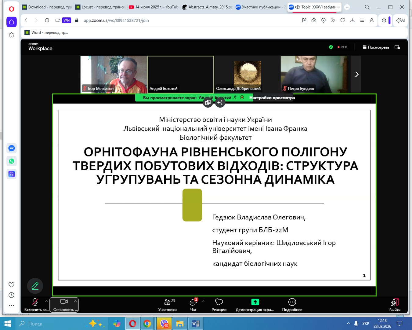 28 лютого кандидат біологічних наук доцент кафедри біології та методики навчання біології І.Р. Мерзлікін взяв участь у роботі ХХХVІ засідання Західноукраїнського орнітологічного товариства, яке відбулося на базі біологічного факультету Львівського національного університету імені Івана Франка.