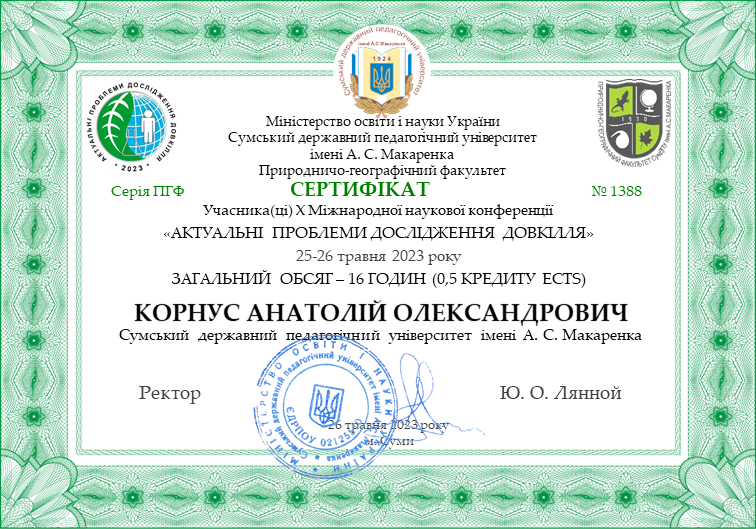 Науковий керівник – к.геогр.н., доцент Корнус Анатолій Олександрович