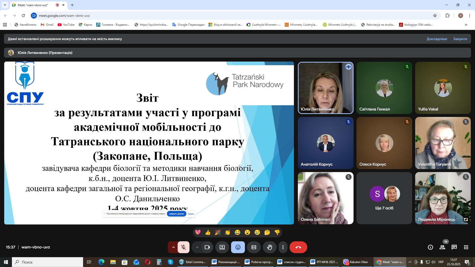 23 жовтня 2025 року на засіданні вченої ради природничо-географічного факультету заслухали звіти учасників програм міжнародної академічної мобільності. У проміжку від попереднього засідання вченої ради, на факультеті таких програм реалізовано одразу три.