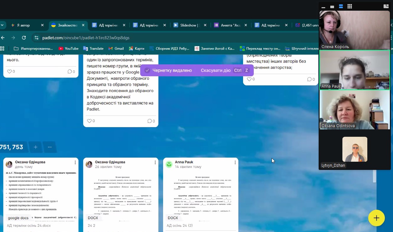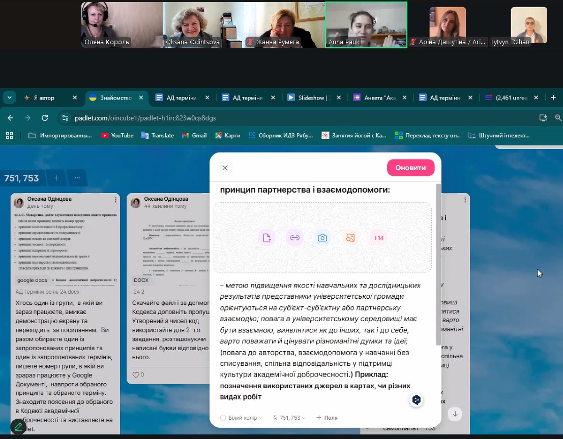 20 жовтня 2025 року гаранти та здобувачі першого (бакалаврського) і другого (магістерського) рівнів вищої освіти спеціальності Е4 Науки про Землю 713 і 753 груп прийняли участь в заході щодо популяризації академічної доброчесності, який організував Центр забезпечення якості вищої освіти серед здобувачів вищої освіти нашого Університету.
