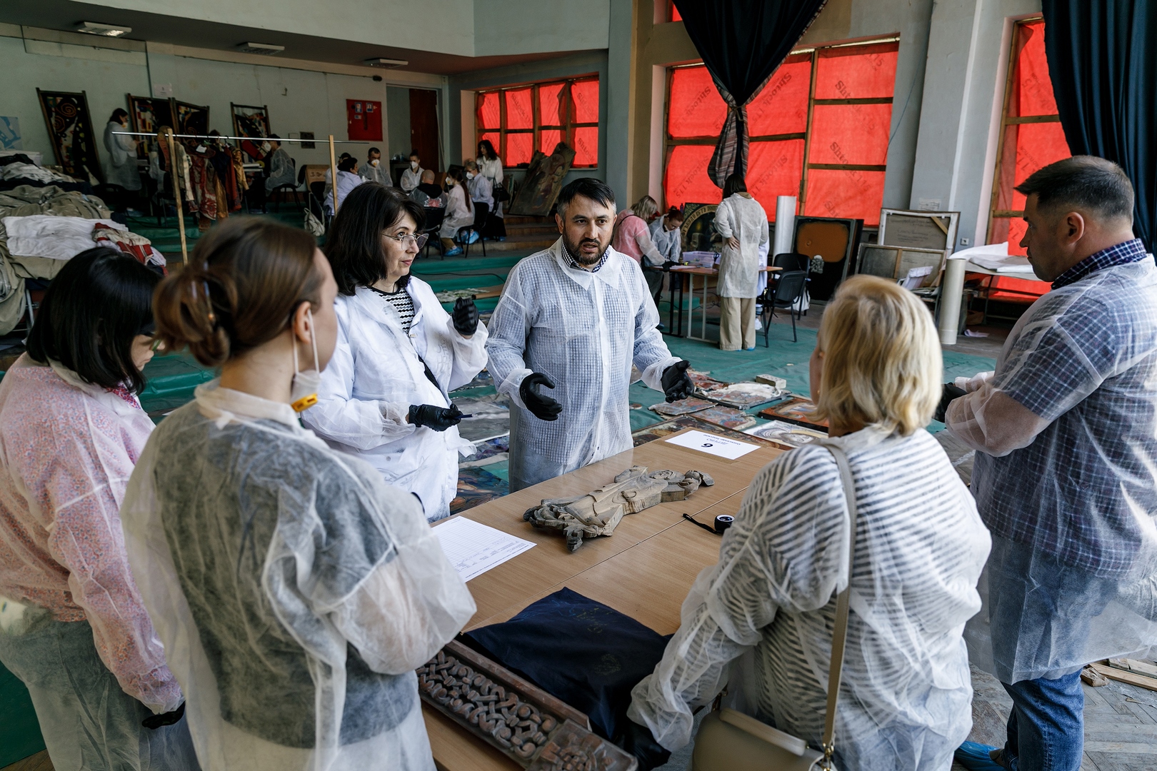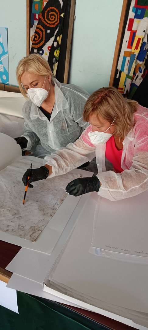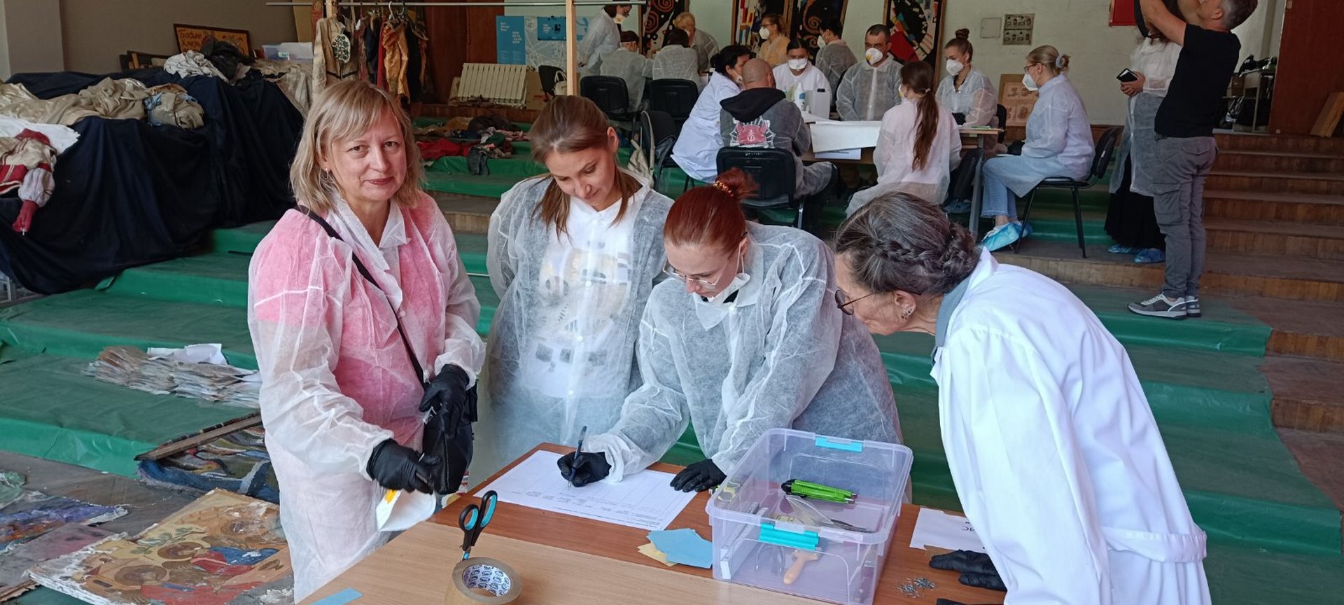 Після теоретичної інформації для учасників тренінгу командою реставраторів (Живопис – Тетяна Бичко, Графіка – Тамара Гайчук, Дерево – Олександр Закусило, Тканини – Тетяна Мінжуліна, Метал – Віктор Голуб, Кераміка, скло – Валерія Рода) були проведено практичні майстер-класи зі стабілізації та упакування предметів по матеріалах.