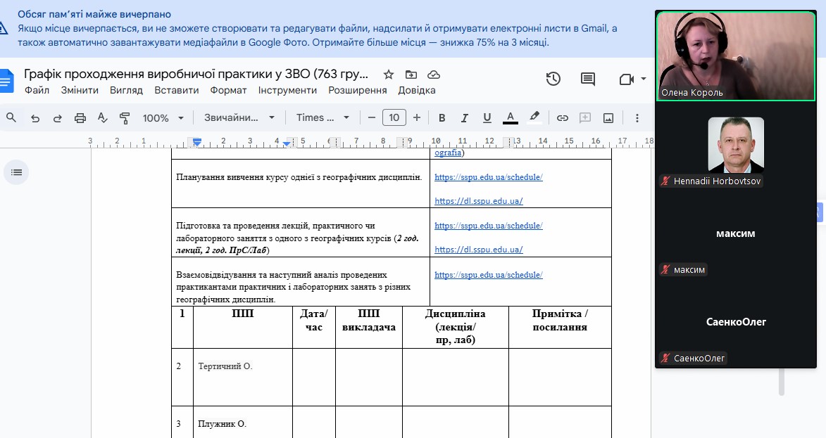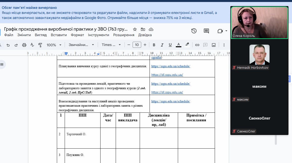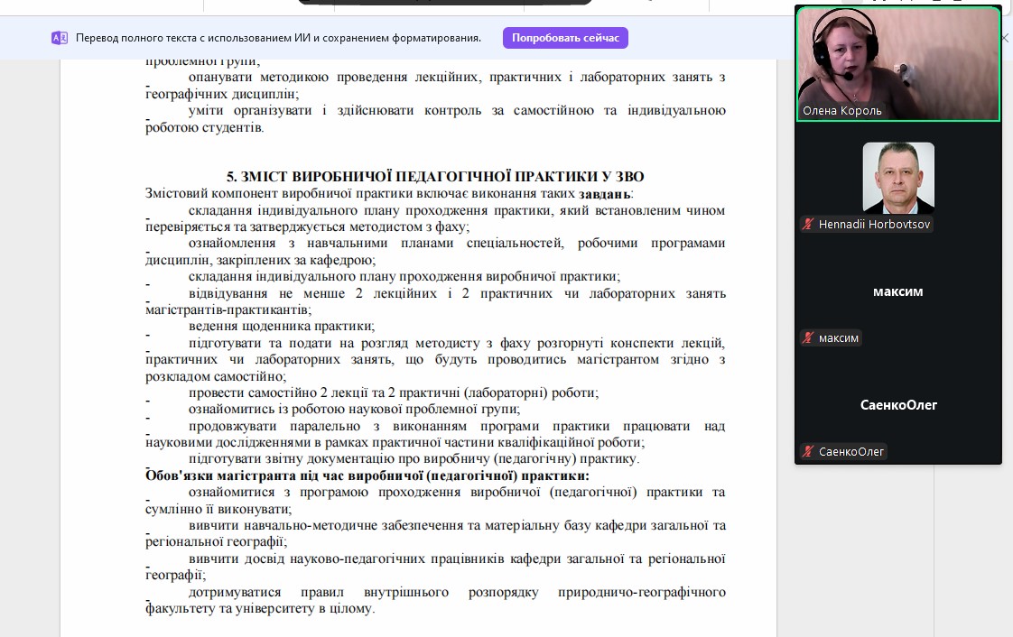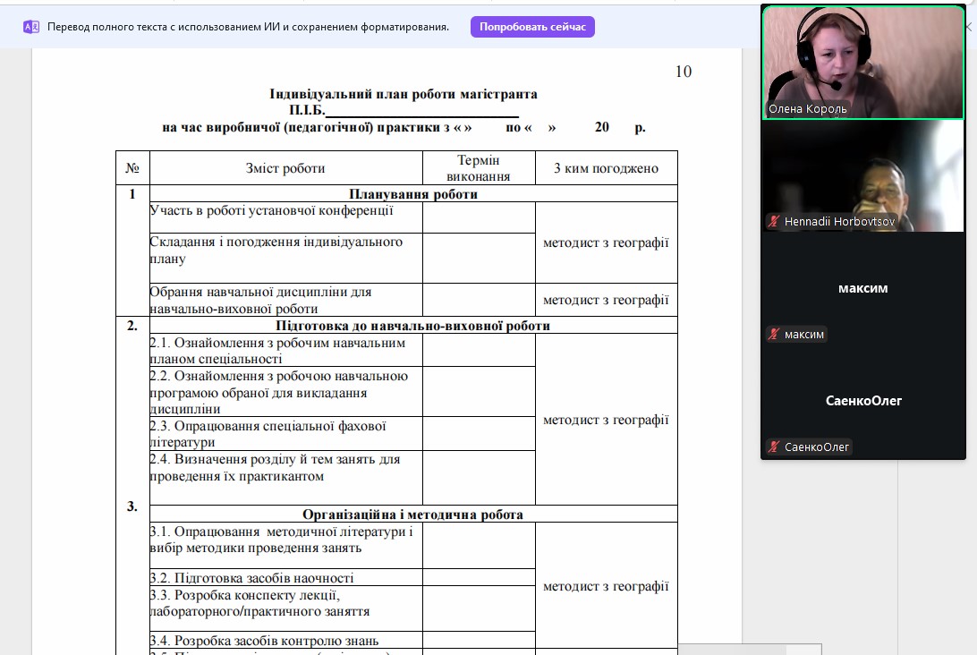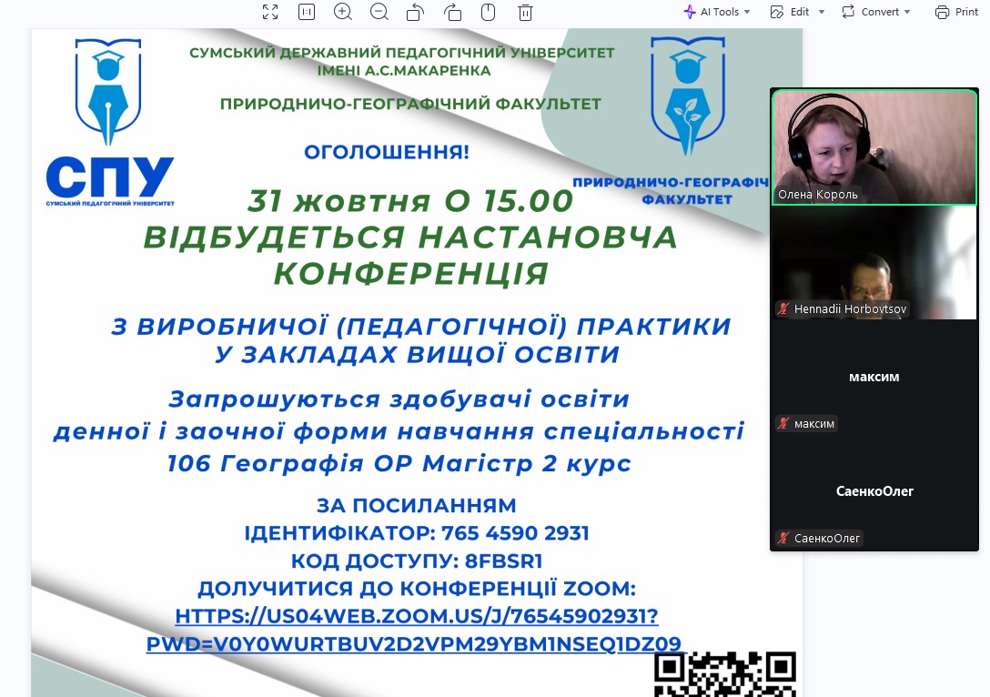 31 жовтня для здобувачів вищої освіти другого (магістерського) рівня денної і заочної форм навчання спеціальності 106 Географія була організована настановча конференція з виробничої (педагогічної) практики у закладах вищої освіти.