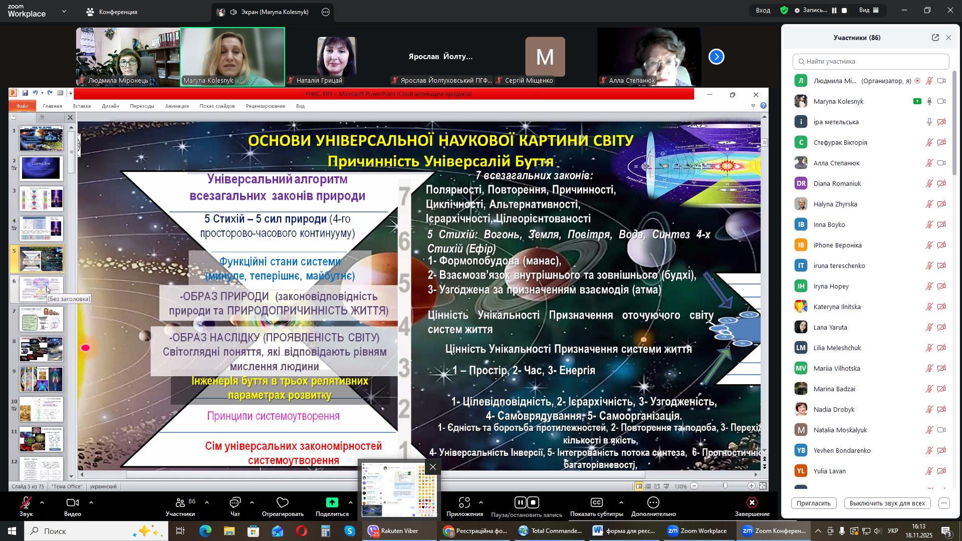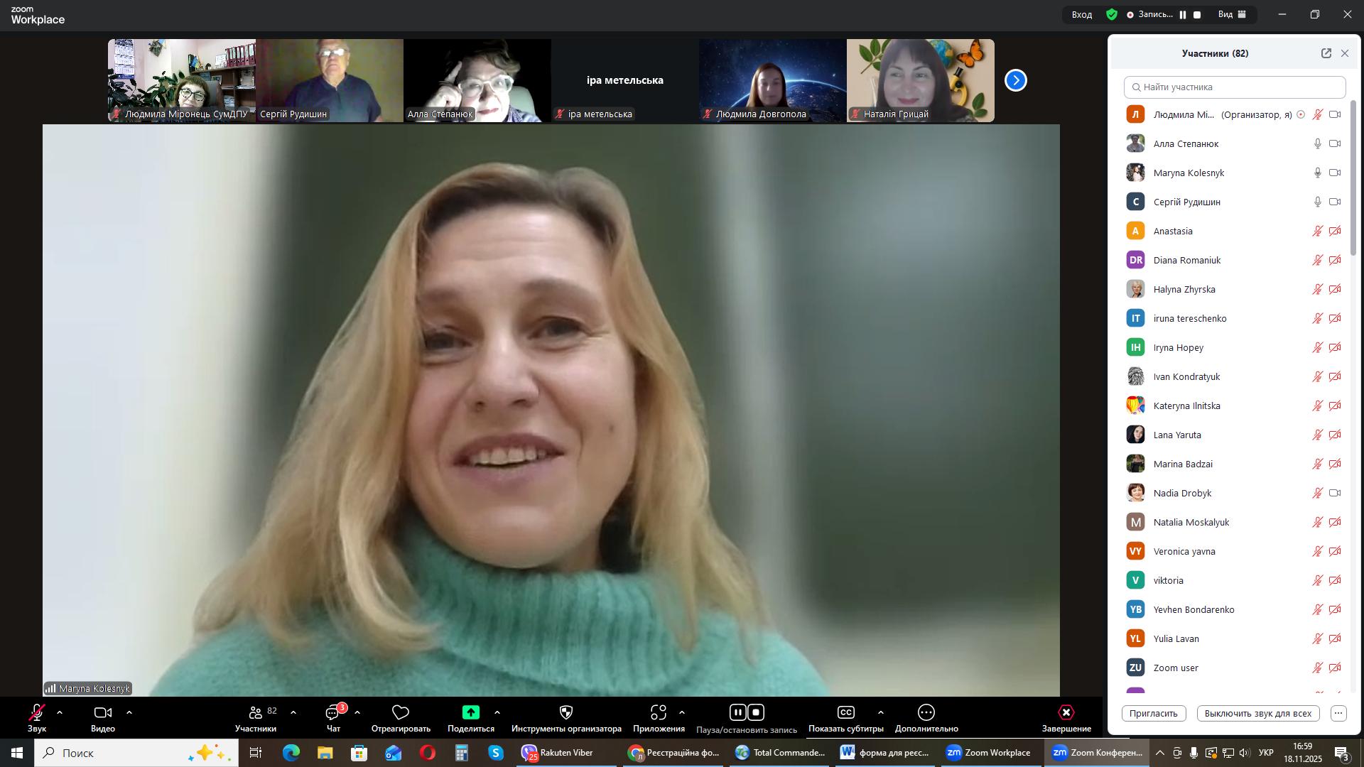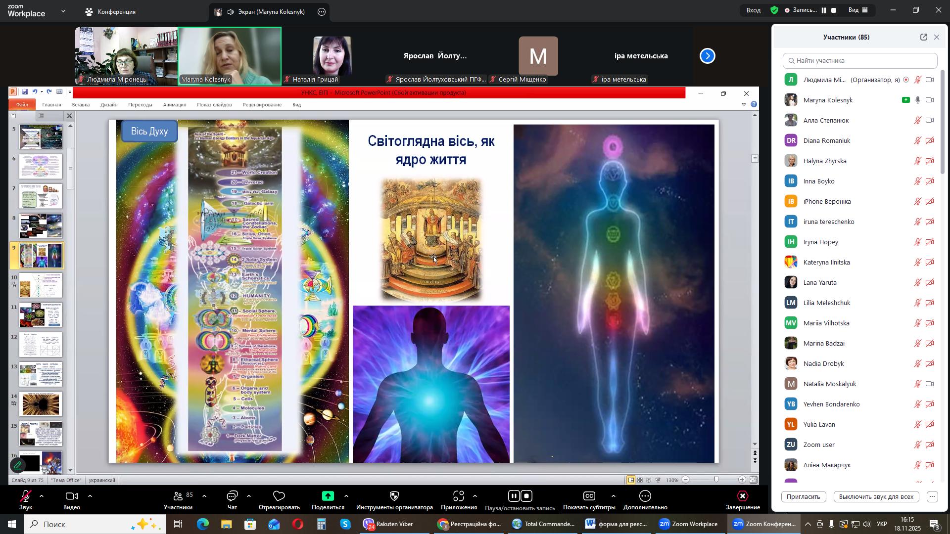 На черговому засіданні міжнародного міжуніверситетського лекторію, 18 листопада 2025 року гостьову лекцію на тему: «Універсальна наукова картина світу: енергоінформаційна педагогіка» прочитала Марина Олександрівна Колесник, докторка педагогічних наук, професорка кафедри біології та здоров'я людини Національного університету «Чернігівський колегіум імені Т.Г. Шевченка».