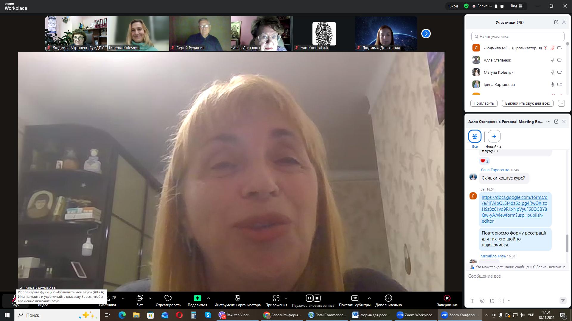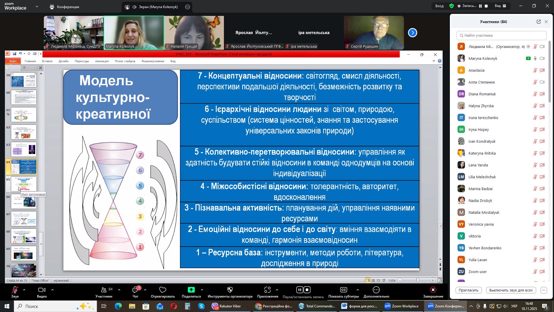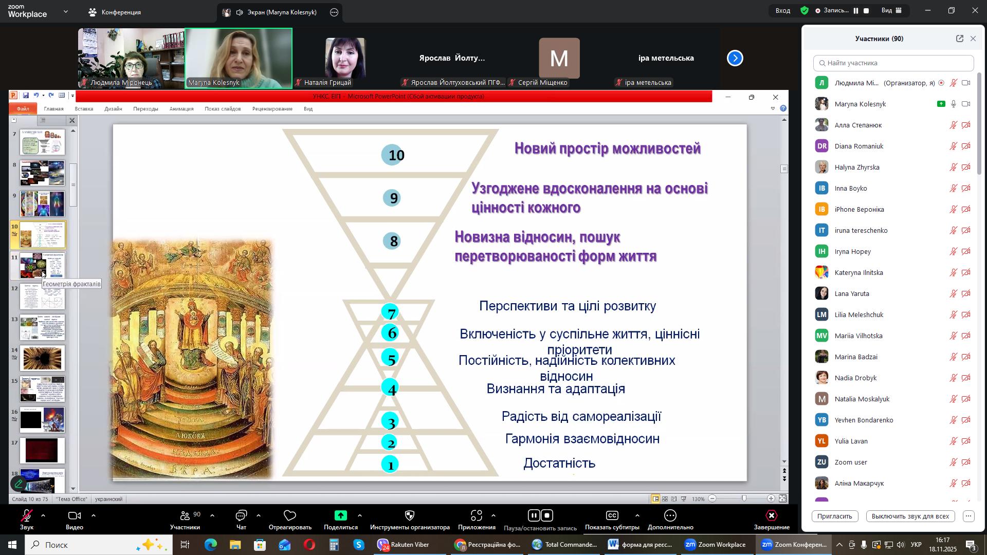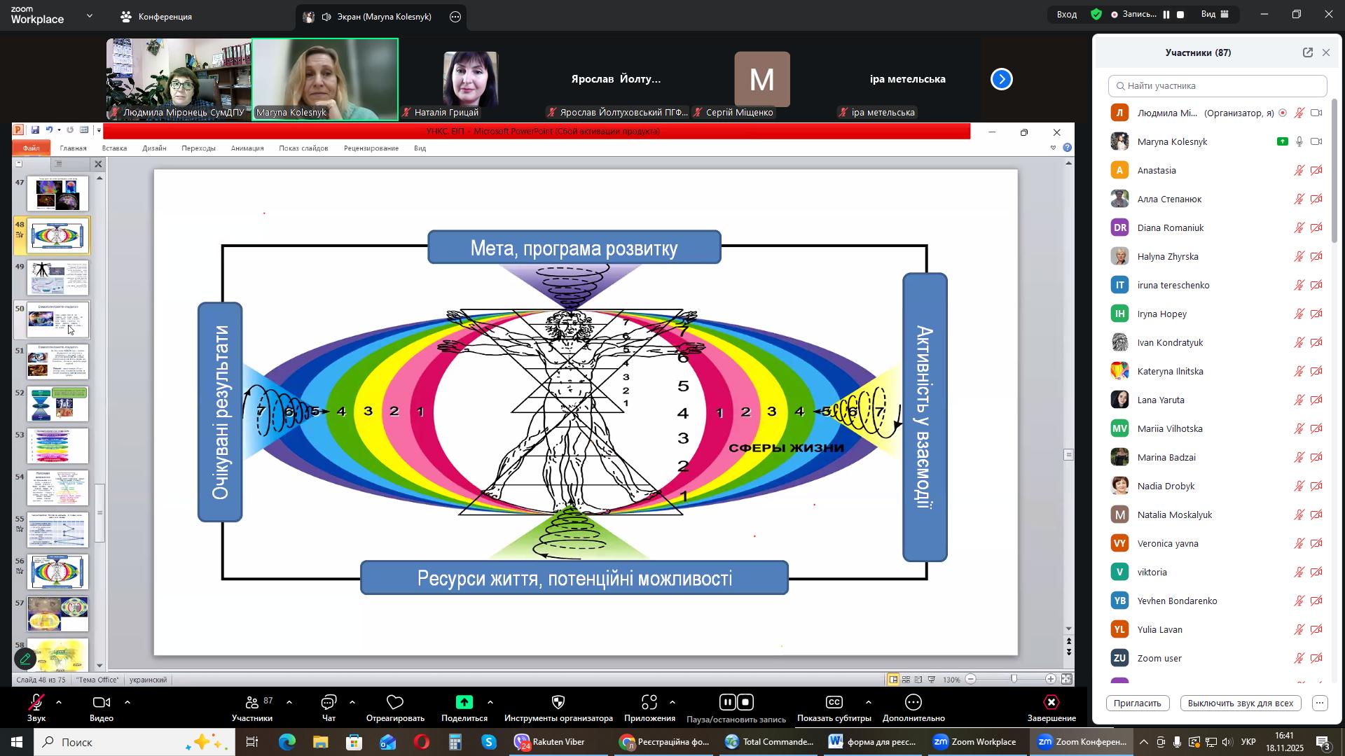 На черговому засіданні міжнародного міжуніверситетського лекторію, 18 листопада 2025 року гостьову лекцію на тему: «Універсальна наукова картина світу: енергоінформаційна педагогіка» прочитала Марина Олександрівна Колесник, докторка педагогічних наук, професорка кафедри біології та здоров'я людини Національного університету «Чернігівський колегіум імені Т.Г. Шевченка».