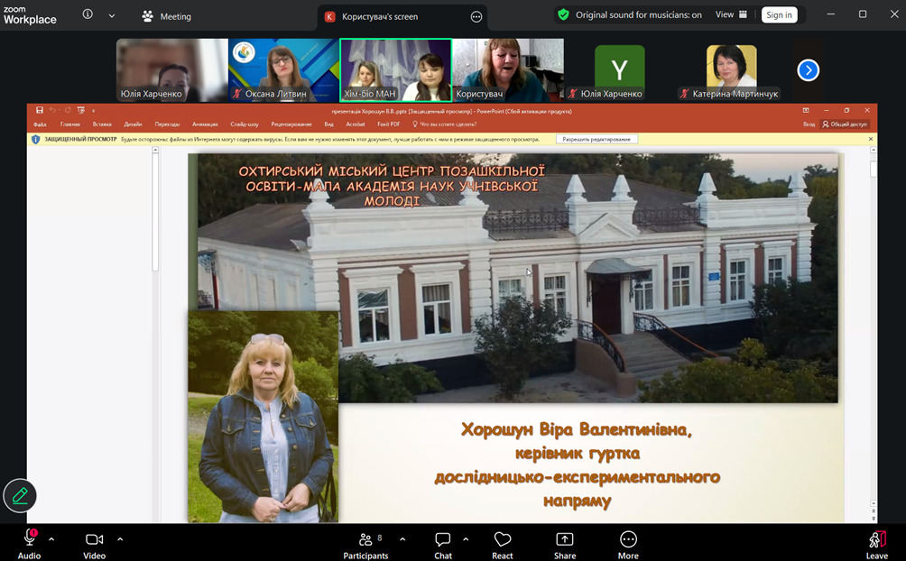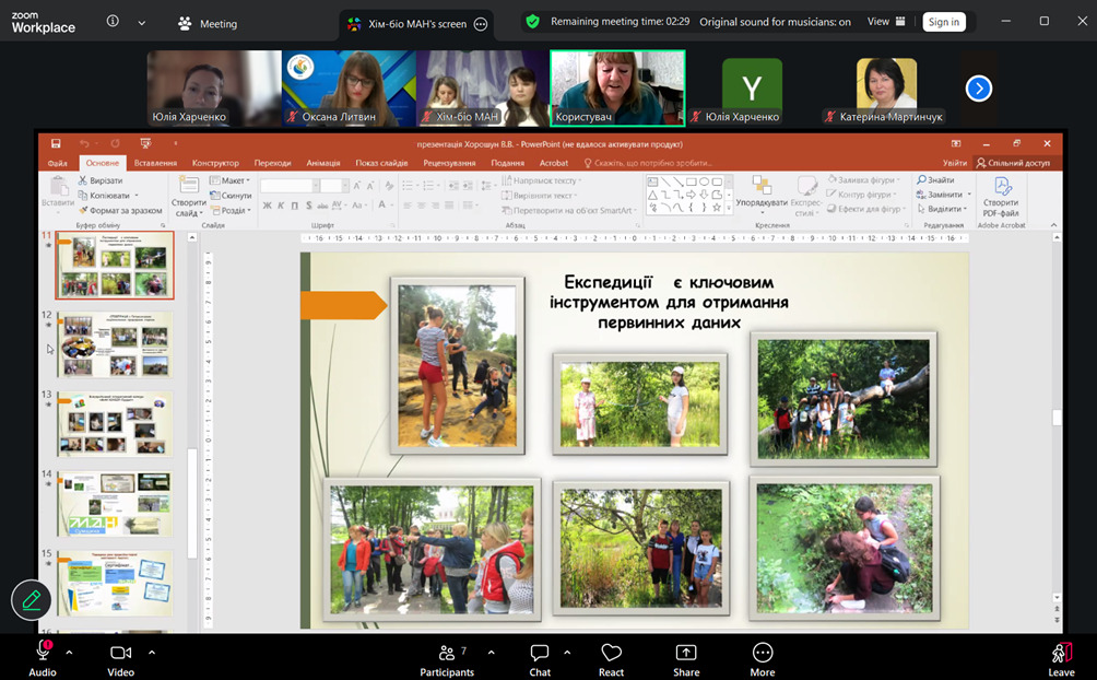 Віра Хорошун (Охтирський міський центр позашкільної освіти) презентувала практику формування дослідницьких навичок молоді через експедиційну діяльність і вивчення рослинності Охтирщини, що дозволяє учням отримувати первинні наукові дані безпосередньо у природному середовищі.