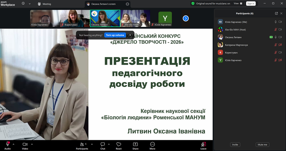 Учасниці конкурсу продемонстрували ефективні моделі інтеграції сучасних наукових підходів у роботу з учнівською молоддю. Зокрема, Оксана Литвин (Роменська МАНУМ) представила досвід використання STEM-технологій у вивченні біології людини, показавши можливості поєднання біології, медицини, інформатики та англійської мови для розвитку дослідницьких компетентностей учнів.