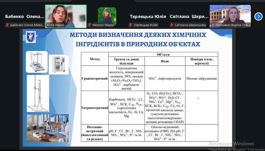 Лекція «Особливості аналізу природних об'єктів» була присвячена методологічним засадам дослідження природних систем. Лекторкою було розкрито специфіку якісного й кількісного аналізу природних об’єктів, обґрунтовано вимоги до відбору проб і забезпечення репрезентативності даних, окреслено підходи до інтерпретації результатів польових і лабораторних досліджень. Окрему увагу приділено міждисциплінарним інструментам, що поєднують хімічні, біологічні та екологічні методи в межах сучасного наукового дослідження.