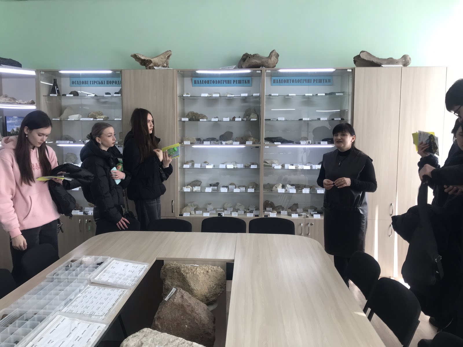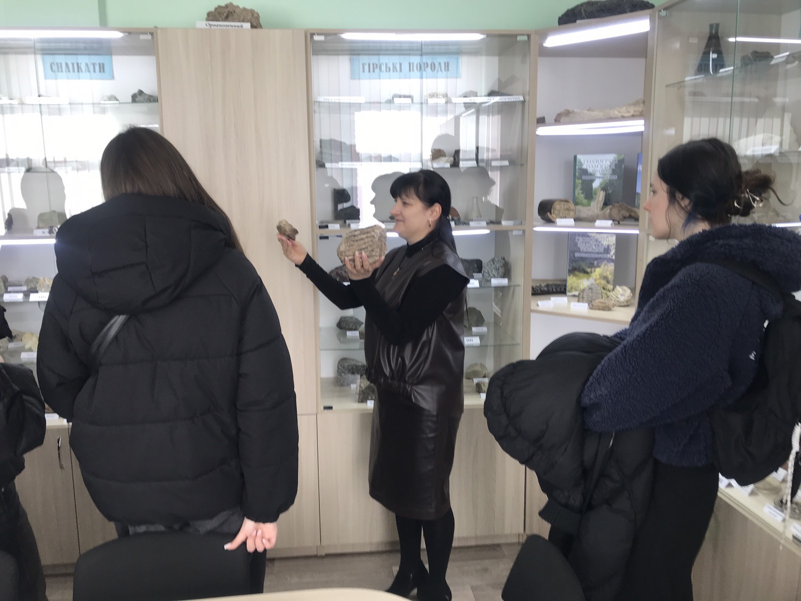 Під час захопливої екскурсії завідувачка геологічного музею, кандидат географічних наук, доцент Олена Данильченко познайомила відвідувачів з експозицією музею та продемонструвала низку цікавих і унікальних експонатів. Серед них – різновиди гранатів та аметистів, колекція мінералів і гірських порід з вулкану Везувій, золотоподібний пірит, а також палеонтологічні знахідки: зуби мамонта й волохатого носорога та фрагмент бивня мамонта. Учасники заходу дізналися про особливості освітнього процесу за спеціальностями А4 Середня освіта (Географія) та Е4 Науки про Землю. Зокрема, майбутнім вступникам розповіли, як проходять практичні заняття з геології безпосередньо в музеї з використанням зразків із його фондів. Окрім цього, гостям представили переваги навчання за цими спеціальностями: захопливі та насичені навчальні практики, зокрема в Карпатському регіоні, можливість участі у програмі «Подвійний диплом», залучення до науково-дослідницької діяльності, міжнародних освітніх програм, а також практичну підготовку та співпрацю з потенційними роботодавцями. Такі зустрічі допомагають майбутнім абітурієнтам ближче познайомитися зі світом географії та наук про Землю й зробити усвідомлений вибір своєї майбутньої професії.