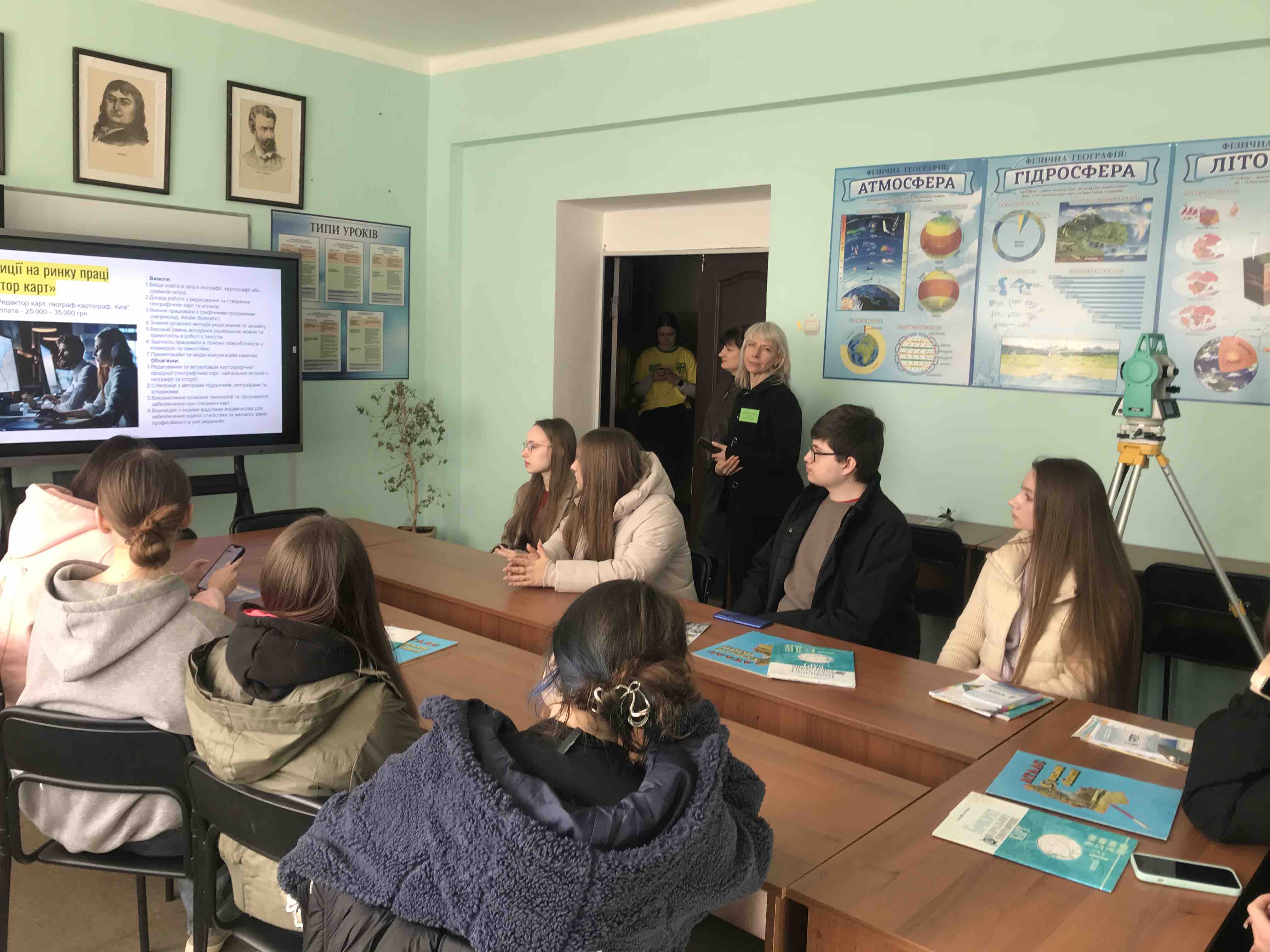 Майбутні абітурієнти мали змогу ознайомитися з особливостями вступної кампанії 2026 року, спеціальностями факультету та перевагами навчання на ПГФ. У межах профорієнтаційних заходів на кафедрі загальної та регіональної географії гості відвідали геологічний музей та кабінет геоінформаційних технологій. Завідувачка геологічного музею, канд. геогр. наук, доц. Олена Данильченко ознайомила відвідувачів з експозицією музею та продемонструвала унікальні зразки мінералів, гірських порід і палеонтологічних знахідок. Серед них – різновиди гранатів і аметистів, колекція мінералів та порід з вулкану Везувій, золотоподібний пірит, а також зуби мамонта й волохатого носорога та фрагмент бивня мамонта. У кабінеті геоінформаційних технологій канд. педагог. наук, доц. Олена Король представила сучасні можливості використання геоінформаційних систем і засобів дистанційного зондування Землі у наукових дослідженнях та освітньому процесі. Під час демонстрації учасники заходу мали можливість познайомитися з програмними засобами, зокрема QGIS та ArcGIS, і побачити, як за їх допомогою відбувається обробка супутникових знімків, створення та редагування електронних карт, а також здійснення просторового аналізу та моделювання різноманітних природних та соціально-економічних процесів. Учасники заходу дізналися про особливості освітнього процесу за спеціальностями А4 Середня освіта (Географія) та Е4 Науки про Землю. Зокрема, майбутнім вступникам розповіли, як проходять практичні заняття з геології безпосередньо в музеї з використанням зразків із його фондів. Окрім цього, гостям представили переваги навчання за цими спеціальностями: захопливі та насичені навчальні практики, зокрема в Карпатському регіоні, можливість участі у програмі «Подвійний диплом», залучення до науково-дослідницької діяльності, міжнародних освітніх програм, а також практичну підготовку та співпрацю з потенційними роботодавцями. Для майбутніх абітурієнтів було організовано тренувальне тестування з біології, географії та хімії в комп’ютерних класах в умовах, максимально наближених до процедури основної сесії Національного мультипредметного тесту. Такі зустрічі допомагають майбутнім абітурієнтам ближче познайомитися зі світом географії та наук про Землю та зробити усвідомлений вибір майбутньої професії.