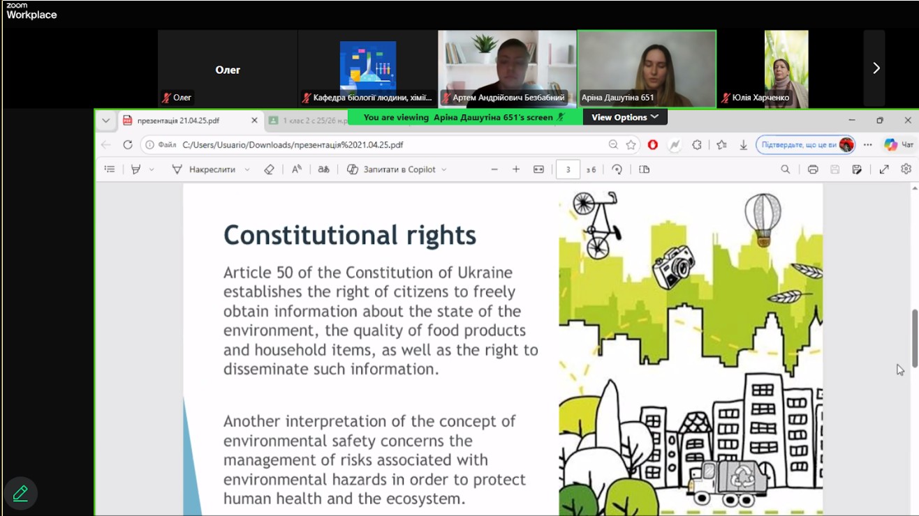 Тематика доповідей торкалися найрізноманітніших тем, що відобразили коло наукових інтересів молодих науковців. Зокрема, хімічних механізмів стресу, психофізіології емоцій, профілактики серцево-судинних захворювань у підлітків, використання STEM-проєктів в інклюзивних класах, міждисциплінарних зв'язків у формуванні екологічної відповідальності учнів, готовності вчителів до розвитку природничо-наукової грамотності, можливостей цифрових технологій і засобів АДК у навчанні хімії, а також аналізу гідрохімічного складу природних джерел Охтирського району. Окремо варто відзначити доповідь Дашутіної А. (651 гр.), представлену англійською мовою, як свідчення зростаючого рівня академічної культури студентів і готовності до участі в міжнародному науковому діалозі.